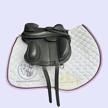 Inky Dinky Plus: Inky Dinky Saddle, Prolite Multiriser Pony Pad (for balance), Stirrups with Cages, Leathers.